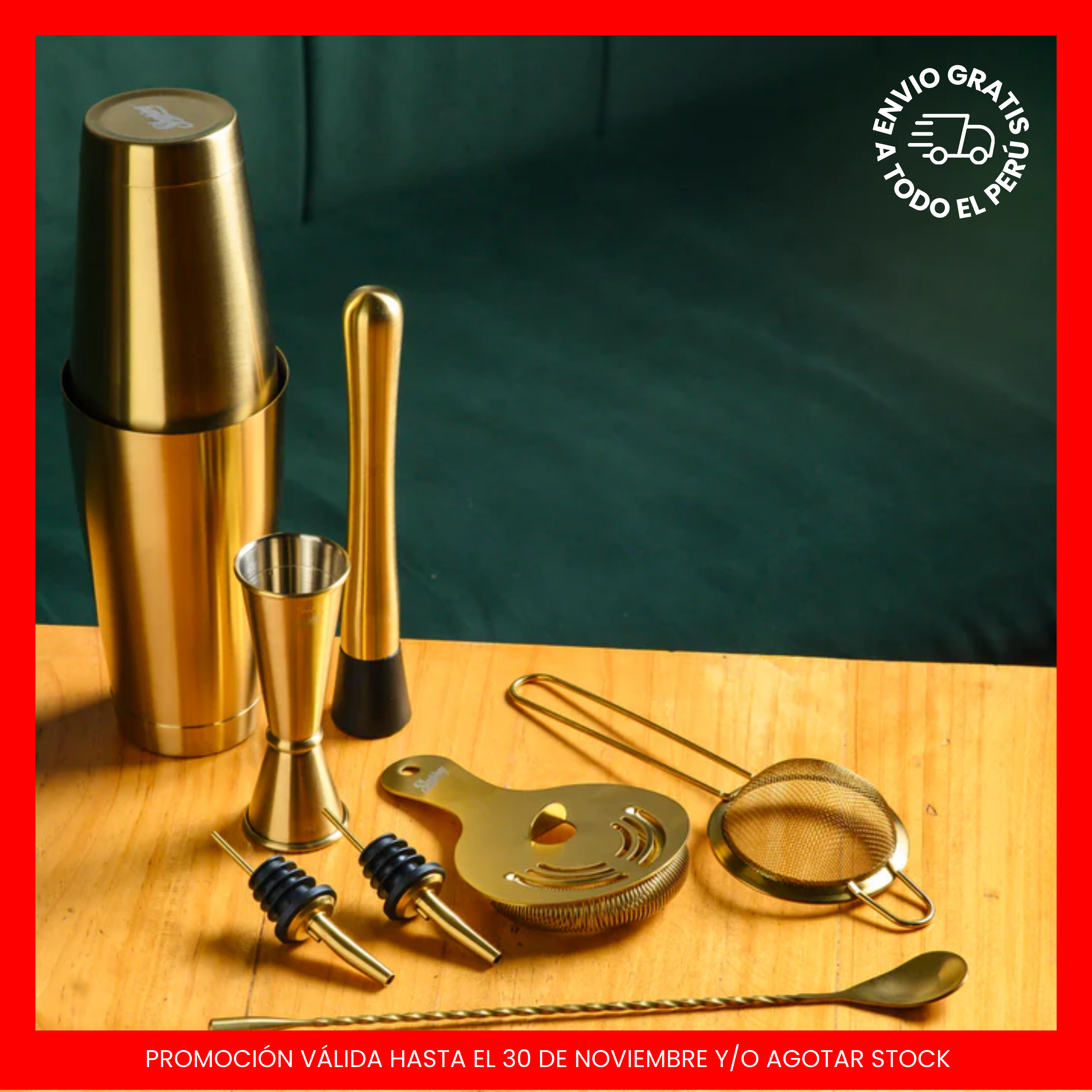 Set de Coctelería Completo Dorado - 8 piezas para Bar